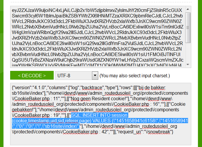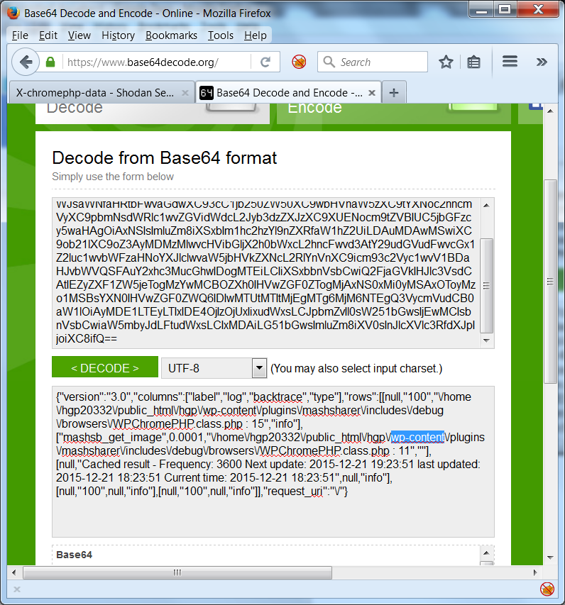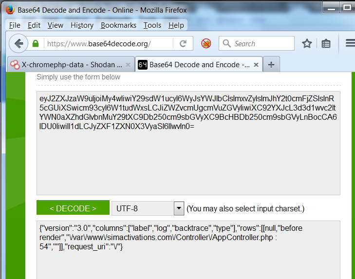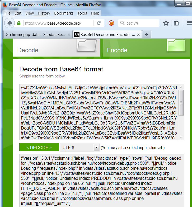 Picking the first X-ChromePhp-Data shodan result I got the following: