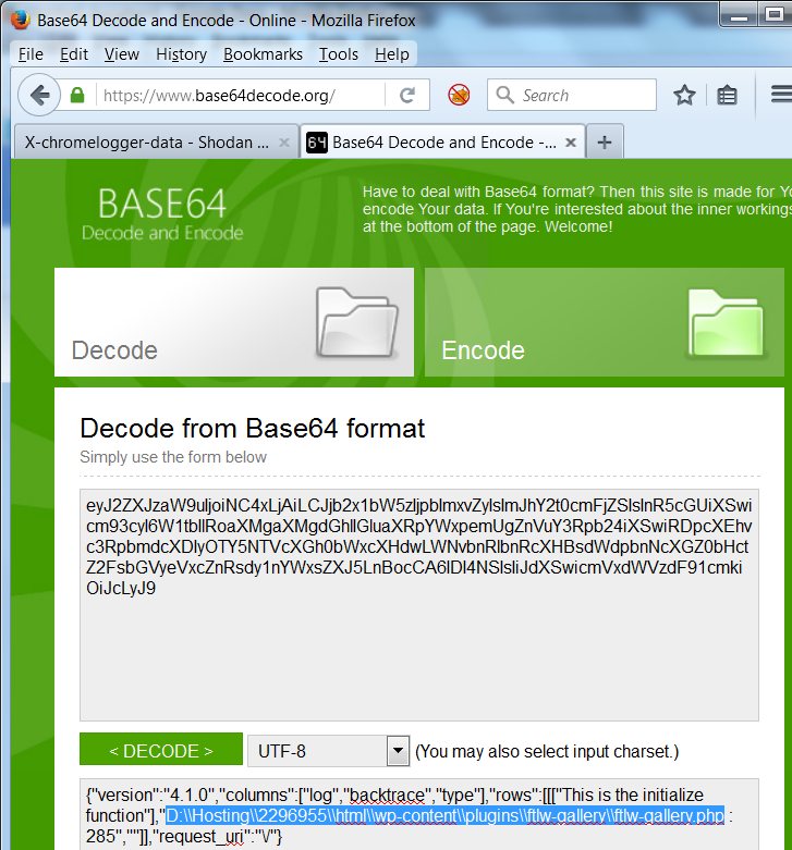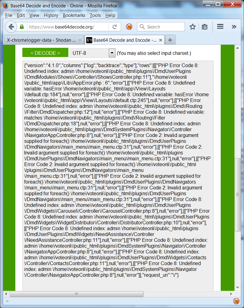 Below I’ve just copied the Base64 encoded header values from the Shodan results and run them through the handy online decoder at https://www.base64decode.org/.