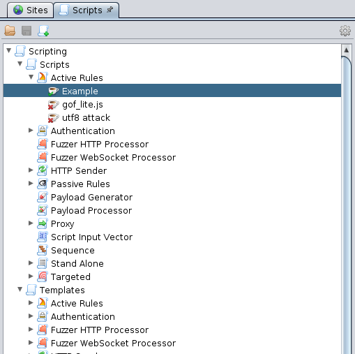 Underneath both of these nodes are the full list of script types that are supported. Script types are pluggable, which means that any ZAP add-on can register its own script types. The following script types are included with ZAP by default: