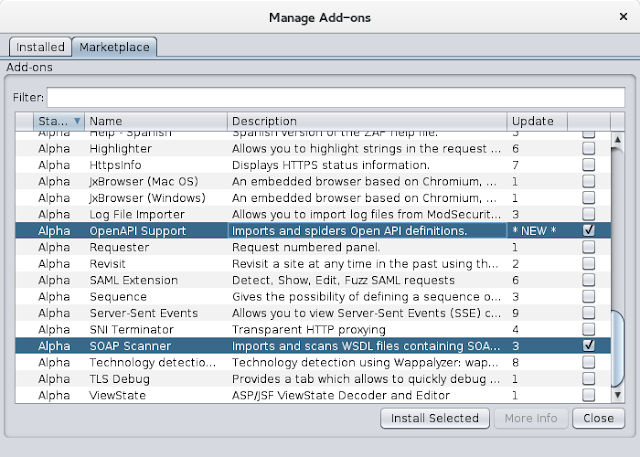 - Select and install the add-ons: * OpenAPI Support * SOAP Scanner