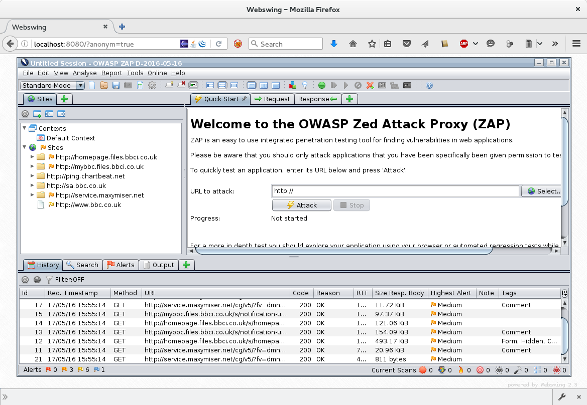 You can even proxy your browser through ZAP, via the URL http://localhost:8090